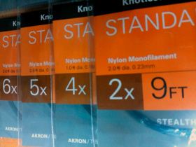 Компании-производители подлесков используют разные соотношения между "Х" и толщиной. Например, подлески 5Х, которые продаются в нашем магазине, имеют толщину от 0,14 мм до 0,16 мм. Точные параметры каждого подлеска напечатаны на его упаковке.