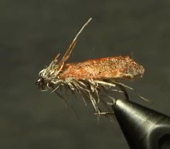 Эта нахлыстовая мушка была придумана когда осталось много обрезков меха оленя. Сам силуэт сухой мушки Ручейника как видит рыба, изготовлен из меха оленя.